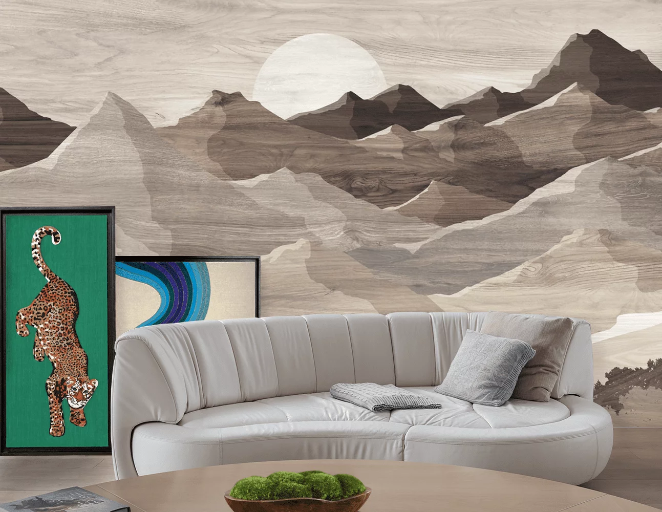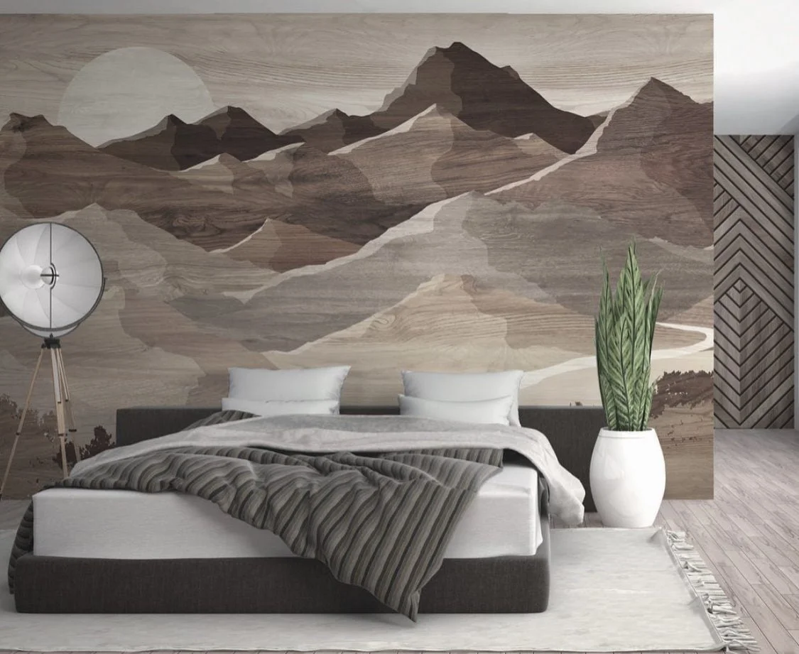 Achieve a cozy environment by incorporating wood within your design. In Feng Shui, wood creates a sense of warmth and harmony. Luna (L12-2102) by LeVel |Paired with Lineae shown on right wall | View Lineae |